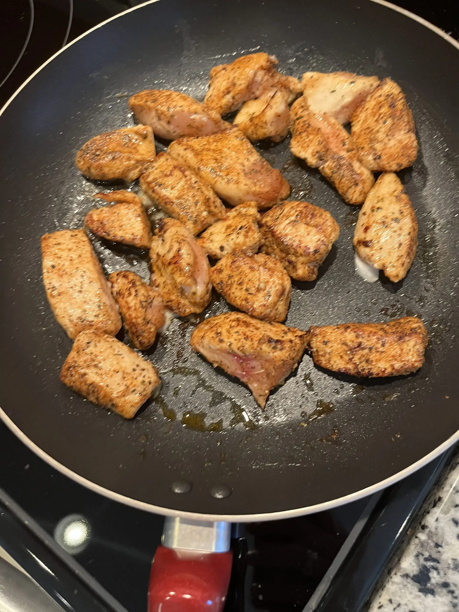 Cut up fresh boneless chicken breasts, and quickly fry chicken in fresh garlic and garlic olive oil. Marinate the bacon for 30 minutes in chipotle sauce. I cook the bacon on a cookie sheet with a rack for 8-10 minutes in the oven at 400 degrees. Cut the cooled back in half. Wrap chicken in bacon and secure with a toothpick.